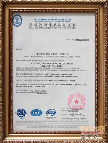 资质荣誉-重庆华丰铝业(集团)有限公司