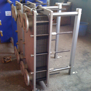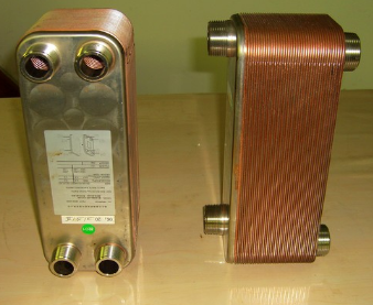 板式换热器里分为可拆式板式换热器、不可拆式板式换热器两个大类,其中钎焊式板式换热器是属于不可拆式的板式换热器中的一种。 钎焊式板式换热器是由一组波纹金属板组成,与可拆式板式换热器板片一样,供传热的两种液体通过,金属板的板与板之间通过99.99%的铜或镍作为焊料,在真空钎焊炉内进行钎焊而成。与可拆式板式换热器相比板片更薄,取消了垫片,消除了腐蚀问题,能够承受更高的温度和压力。 钎焊式板式换热器内的流体的流量、物理性质、压力降和温度差决定了板式换热器板片的数量和尺寸.波纹板不仅提高了湍流程度,还形成很多支撑点,足以承受介质间的压力差.由于具备高性能,省空间,省能源等许多优点,钎焊式板式换热器的特点适合于温度较高压力较大(热交换介质不适宜于接触胶垫)等工况,同时由于没有板式换热器的常用框架板部分,其体积很小,适合空间狭小的设备安装区。在船用加热器、空调机组的蒸发冷凝方面都有广泛应用。 烟台金盛换热器严格按照由瑞典阿法拉伐标准制造每一台板式换热器。