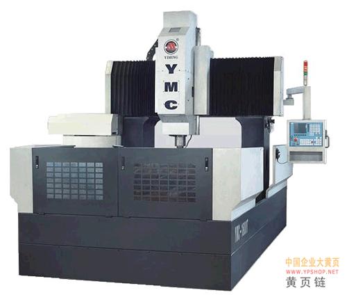 YMC-1800T龙门铣主要技术参数及配置: 项 次 项 目 技术参数 1 X/Y/Z行程 1400/1800/800 2 工作台最大负重 4000Kg 3 龙门宽度 1560(大约值) 4 龙门高度(主轴鼻端到台面) 1000(大约值) 5 最大走刀速度(G01) 6000mm/min 6 最大移动速度(G00) 15000mm/min 7 主轴电机功率 15~18.5KW 8 主轴额定转速 6000RPM/Min 9 主轴锥孔规格 BT50 10 整机毛量 14.5T 11 电气总容量 40KVA 12 输入电源电压/频率 380V/50Hz 13 数控系统 三菱M70(可选其它品牌系统) 14 X/Y/Z轴控制分辩率 0.001mm 15 润滑系统 参数可调式自动给油装置 16 配重系统 油压配重系统(可选氮气配重) (因技术研究提升,本公司有权修改相关技术参数,恕不另行通知) 标准配置: 1、主轴无极调速 2、主轴恒温油冷系统 3、主轴油气组合系统和集中润滑系统 4、机床全防护 5、导轨防护 6、空气和切削液两种刀冷却系统 7、刚性攻丝 8、变压器 9、三色灯 10、标准附件 可选如下配置: 1、数控系统:三菱E68、FANUC 0i、西门子802D、西班牙发格、台湾宝元 、新代等 2、进口/国产自动对刀仪 3、机械式刀库 4、数控回转工作台(第四轴) 5、高压主轴中心出水 注:我厂所有产品报价均以标准配置报价,如需增加选配功能或配件,价格需买卖双方共同协商。