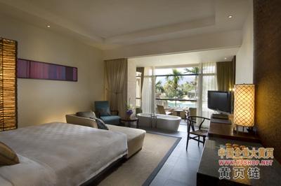 488平方米的总统套房布置优雅,将现代化中国南部的设计风格同海南本地特色相结合。开放式浴室内置圆形浴缸,客房内包括宽大敞亮的私人阳台、32寸液晶电视、DVD播放机,枕头“菜单”、独立的梳妆台、分离式淋浴房,手持式花洒、熨斗、体重秤、迷你吧、桑拿室、独立健身房与更衣室、独立的餐厅、厨房等。