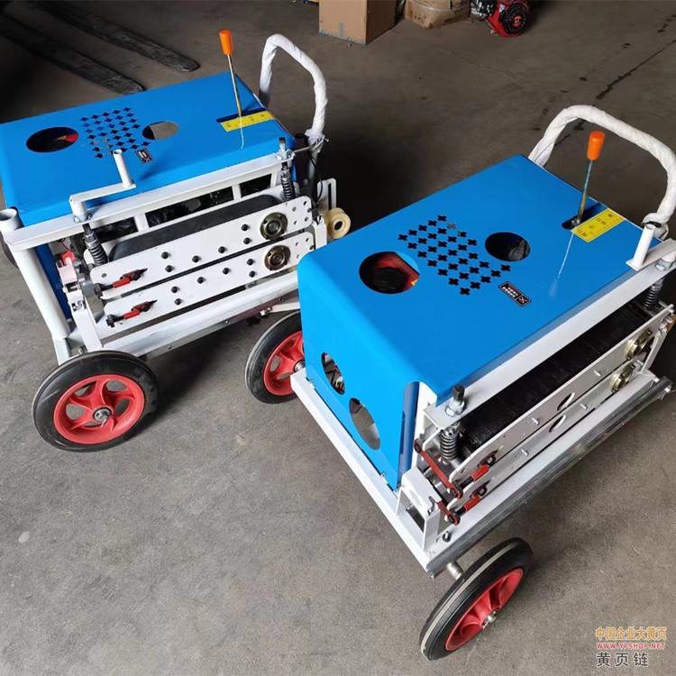 本机是汽油机带动来完成拉缆,推缆这一系列操作。解决了工人的劳累,从施工人数来说以前至少3个人来完成拉缆,现在不用人工来拉了,光缆牵引机就可以完成,机器传输速度快,约每分钟30米-50米,光缆粗细决定拉缆的速度,越粗,速度相对来说就越慢,越细,速度相对来说就越快。有个别的人拿来拉钢绞线,不是不可以拉,但必须用履带光缆牵引机才可以,如果你用皮带的来拉,肯定不到半天就得更换皮带。所以你们选择的时候好挑选履带胶块传动方式,以确保机器的使用寿命。