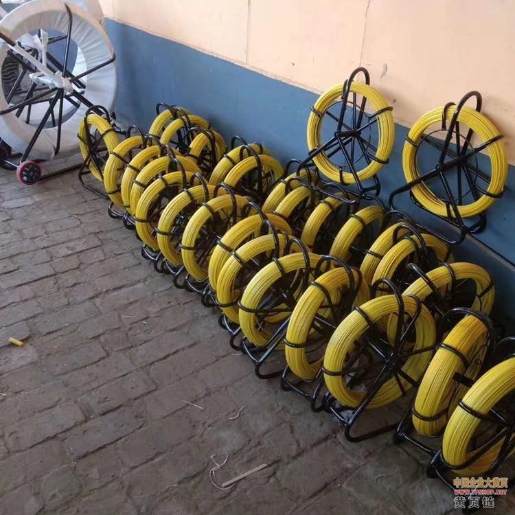 玻璃钢穿孔器又名(玻璃钢穿线器、玻璃钢穿管器,穿孔器,穿管器,电缆穿管器,电缆穿孔器)对于在管道中牵引引导绳是辅助工具。光滑又富于弹性的表面可使穿孔器轻松地通过狭窄的通道。穿孔器由三部分构成:铜芯、玻璃纤维加强层、高压低密度聚乙烯防护层(平滑、坚固,可抵抗恶劣环境)。铜芯导体使捅条可以用不同方式轻易安放。璃钢穿孔器具有省时,省力,提高工效等优点,可用于电信管道清洗及光缆,电缆和塑料子管的布放。使用时首先将玻璃钢覆杆由引轮引出,然后与相应的金属头联接,穿入管路内。用于清理时,引导头带动清理工具,可以清理管道;用于布放电缆时,可先将钢丝或铁线带入,尔后用钢丝或铁线牵引电缆入管。杆 径 11-18mm 杆 长 100-500m 温度范围 -40℃至+80℃小弯曲半径 295mm 牵引断裂张力 4.5T 线密度 150g/m 建筑施工引线用墙壁穿线器,长度30m、40m、60m、80m、120m、150M,200M,300M,500M 1000米等,可按客户要求定制。