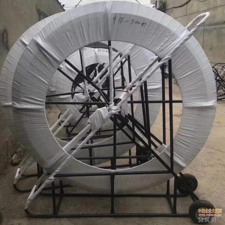 玻璃钢穿孔器又名(玻璃钢穿线器、玻璃钢穿管器,穿孔器,穿管器,电缆穿管器,电缆穿孔器)对于在管道中牵引引导绳是辅助工具。光滑又富于弹性的表面可使穿孔器轻松地通过狭窄的通道。穿孔器由三部分构成:铜芯、玻璃纤维加强层、高压低密度聚乙烯防护层(平滑、坚固,可抵抗恶劣环境)。铜芯导体使捅条可以用不同方式轻易安放。璃钢穿孔器具有省时,省力,提高工效等优点,可用于电信管道清洗及光缆,电缆和塑料子管的布放。使用时首先将玻璃钢覆杆由引轮引出,然后与相应的金属头联接,穿入管路内。用于清理时,引导头带动清理工具,可以清理管道;用于布放电缆时,可先将钢丝或铁线带入,尔后用钢丝或铁线牵引电缆入管。杆 径 11-18mm 杆 长 100-500m 温度范围 -40℃至+80℃小弯曲半径 295mm 牵引断裂张力 4.5T 线密度 150g/m 建筑施工引线用墙壁穿线器,长度30m、40m、60m、80m、120m、150M,200M,300M,500M 1000米等,可按客户要求定制。