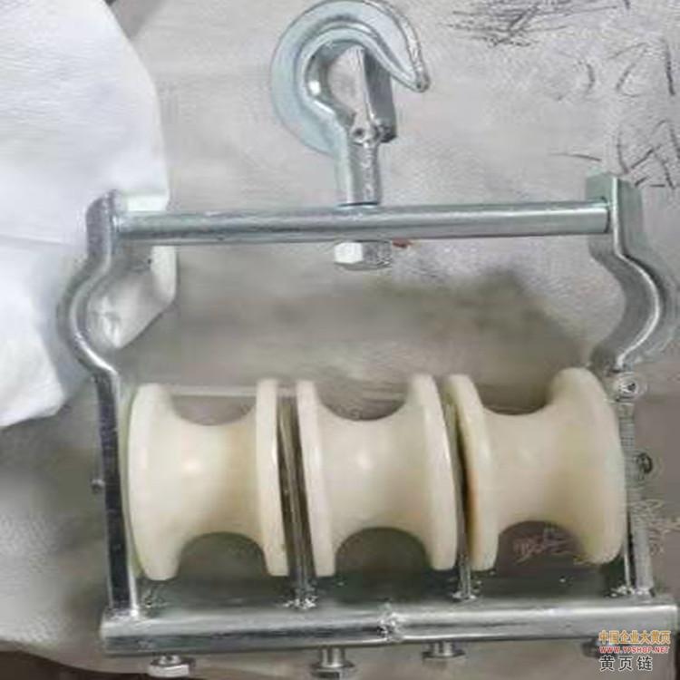 适用于直线杆塔上延放铝绞线和钢芯铝绞线。连接器和压接钳压管可从轮槽内通过。 有铝合金和MC尼龙两种。